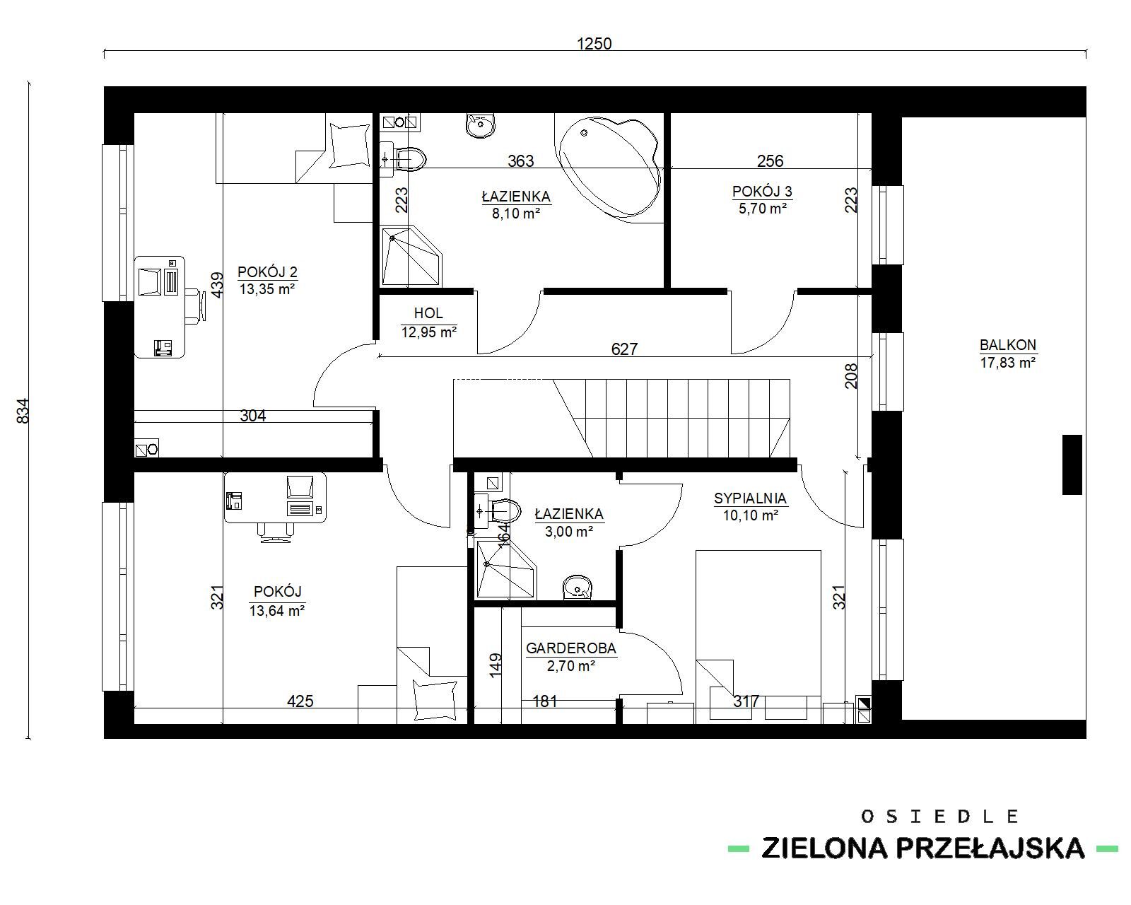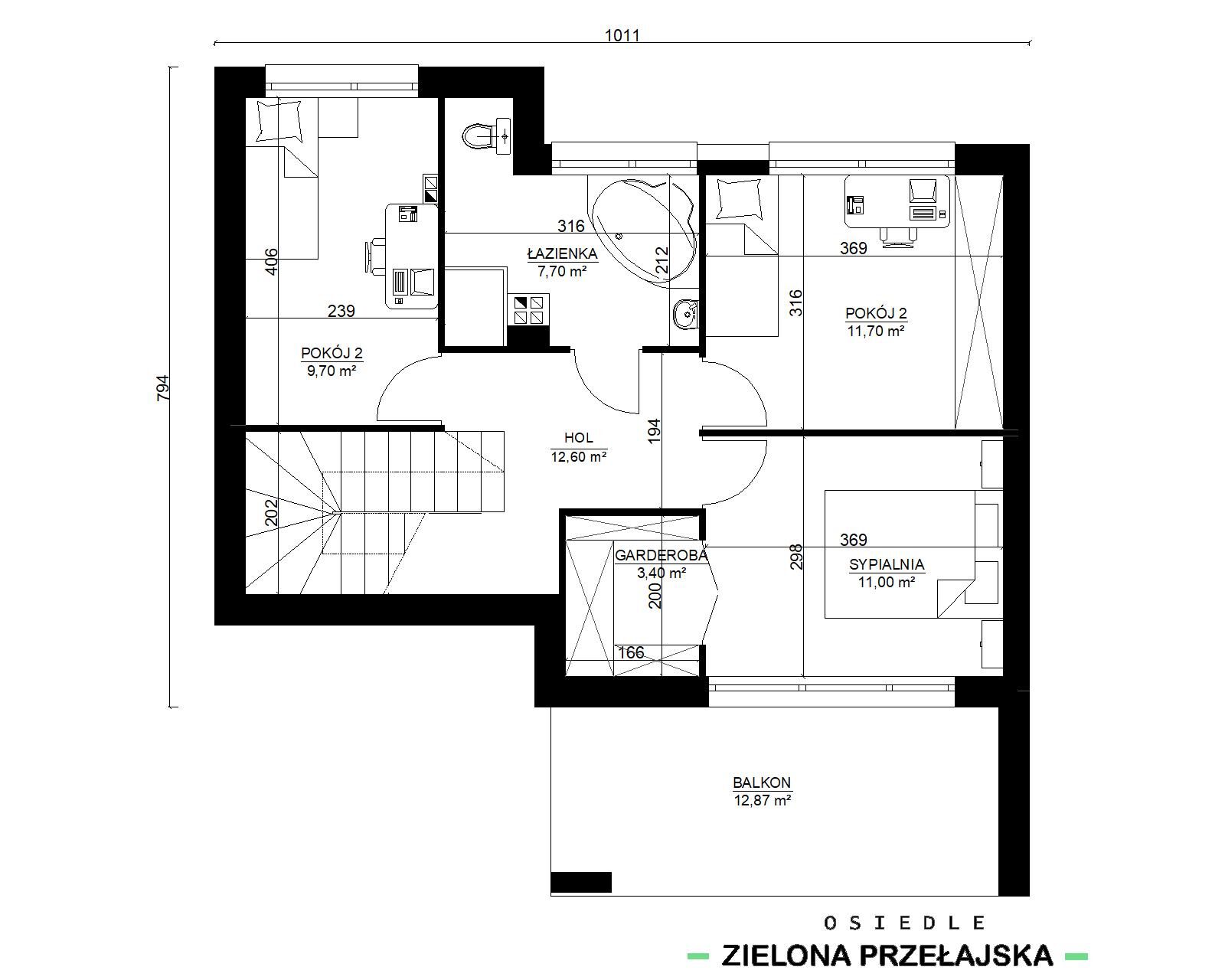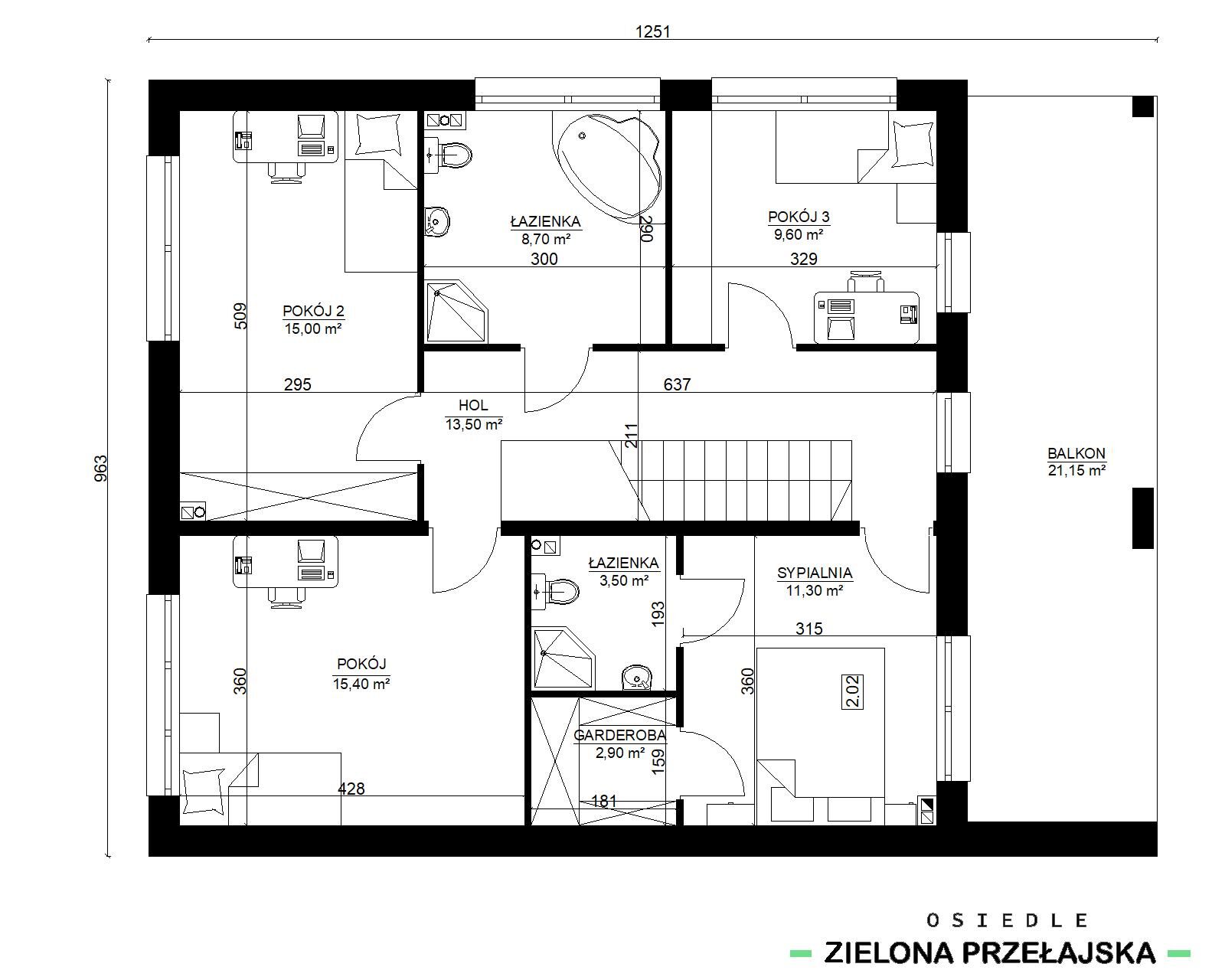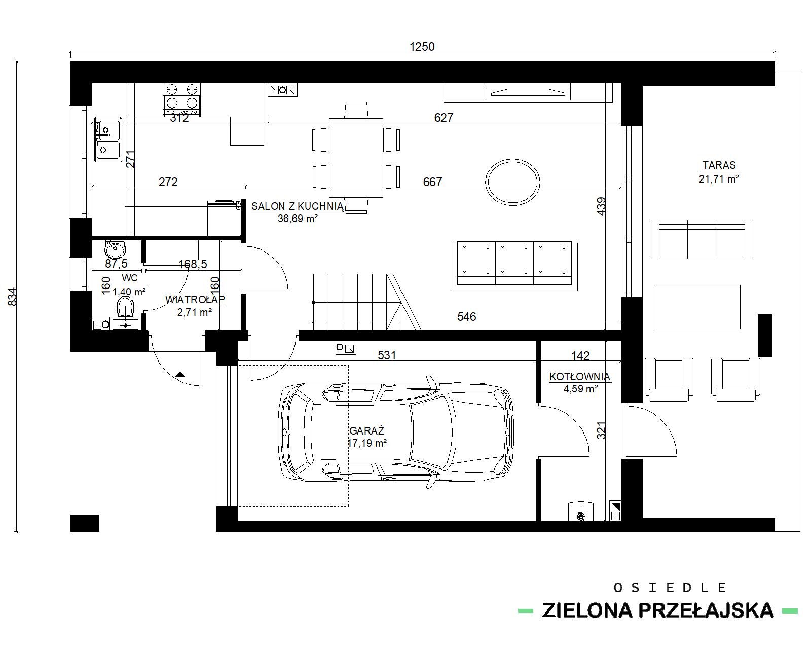 | 8 | Bliźniak z garażem | 115,07 ㎡ | 17,05 ㎡ | 132,12 ㎡ | 145 ㎡ |